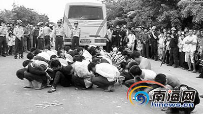 經(jīng)查,此次險(xiǎn)些釀成重大聚眾斗毆事件的起因僅僅是兩家沙場老板之間的恩怨糾紛。在初步的情況調(diào)查中,警方掌握到臨高縣紅華農(nóng)場抱桂村村民鄭某與和舍鎮(zhèn)王某因?yàn)樵诔芜~陽坡和臨高中林交界處的沙場經(jīng)營問題上產(chǎn)生矛盾糾紛,爭吵未果引發(fā)兩方召集人馬欲進(jìn)行械斗的事端。