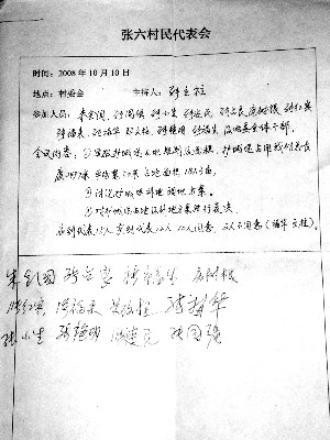 一份村民代表會(huì)議記錄上的簽名,代表說(shuō)是簽到證明,鎮(zhèn)領(lǐng)導(dǎo)說(shuō)是表決簽名
