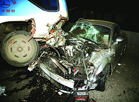 7日零時(shí)10分許,一車牌為魯BME5XX的奧迪TT跑車,在沿東西快速路由東向西方向行駛至三百惠附近時(shí),因超車與前方一輛同向行駛的中巴車相撞,由于沖擊力巨大,兩車騰空而起飛出數(shù)米遠(yuǎn)后墜地,落在一輛原本與中巴車并列行駛的出租車前!拔疫沒反應(yīng)過來,就聽到‘砰’一聲,兩輛車從天而降,落在我的車前方不遠(yuǎn)處,我趕緊剎車!笔潞蠼邮芙痪{(diào)查的目擊者、一名出租車司機(jī)回憶道。據(jù)另一位目擊者王先生稱,當(dāng)時(shí)他駕車以每小時(shí)90公里的速度行駛,只見一個(gè)銀灰色的影子從自己車后竄到前面,估計(jì)車速在每小時(shí)140公里以上,該車與前面的中巴相撞時(shí),沒有采取任何減速措施,基本是踩著油門撞上的,隨后就見到一白色的影子被甩出奧迪車,摔在路上。
