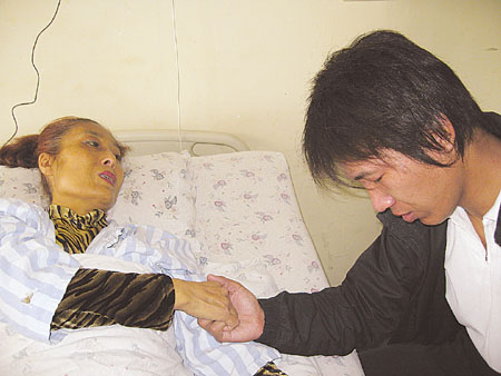 其實,早在2006年,在母親患病中期,兒子常津銘就從網(wǎng)上查到關(guān)于肝臟移植手術(shù)的資料,但沒想到母親的病真的發(fā)展到這一步。當(dāng)看著往日的漂亮媽媽皮膚黑黃,人也越發(fā)消瘦,兒子的心里難受極了。他安慰母親:“老媽,你放心,需要換肝我一定給你!碑(dāng)時,媽媽愣住了:“兒啊,你胡說什么,媽都這么大年紀(jì)了,你以后的路還長著呢!”“不行,老媽,我能救你而不救,我會遺憾一輩子的!”