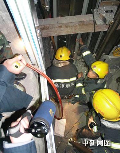 21時(shí)21分,消防官兵到場(chǎng)后發(fā)現(xiàn),事故現(xiàn)場(chǎng)是一幢在建的高層住宅樓,據(jù)安裝電梯的一名負(fù)責(zé)人講,事發(fā)前電梯停在28樓,當(dāng)時(shí)有兩名工人在電梯內(nèi)施工,其中一名在轎廂頂部,另外一名則在轎箱內(nèi)部,電梯突然失去控制后向下墜落,一直墜到了底層,兩名工人全部被困。電梯間內(nèi)則堆滿(mǎn)了鋼絲繩和一些零部件,轎箱根本無(wú)法向提升,現(xiàn)場(chǎng)的工人們只把轎廂上面的那名工人救了出來(lái),而轎廂被壓在了底層,加一名工人仍被困在轎廂內(nèi)。