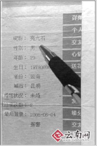 去年3月,網(wǎng)名為“迷惑夢中人”的小麗(化名)閑著無事,便上云南信息港的交友網(wǎng)上玩耍,當(dāng)看見網(wǎng)名叫“亮光石”的征婚廣告:“29歲,無不良嗜好,采礦業(yè)執(zhí)行官,月收入兩萬元。誠征20至28歲的單身女孩為終身伴侶,學(xué)歷高中即可”時,小麗記下了他的聯(lián)系方式,雙方還互相留下QQ號碼。