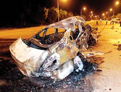 事故發(fā)生后,記者接報(bào)趕到現(xiàn)場發(fā)現(xiàn),被撞后嚴(yán)重扭曲變形的“天籟”小轎車,已燒剩一副骨架,車尾部仍在不停地冒煙,現(xiàn)場彌漫著一股刺鼻的焦臭味;而離該車尾部左邊約七八米外的雙黃線旁,橫臥著一具身穿紅色上衣的男子尸體;該車內(nèi)右側(cè)座位上也有一具已被燒焦的尸體。