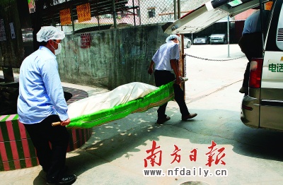 中午1時許,在保安與警察的護送下,女子尸體裹著白布被抬出,隨后被殯葬車接走。阿保和房東則被警方帶走調(diào)查。