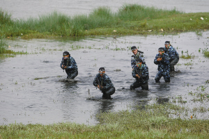 就在突擊隊員接受特戰(zhàn)訓(xùn)練的時候,兩輛掛瓊字牌的警車悄無聲息地停在了路邊。從車上走下三人,目不轉(zhuǎn)睛地盯著受訓(xùn)隊員。