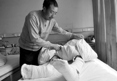 高煥東醫(yī)生告訴記者,小陳的腰1、2、4節(jié)椎體壓縮性骨折,左小腿粉碎性骨折,右足3、4、5節(jié)蹠骨骨折,右跟骨骨折,現(xiàn)在還在進(jìn)一步治療恢復(fù)中。而小陳的父親告訴記者,目前已花了5萬多元錢,向親戚朋友借遍了錢,已經(jīng)無力繼續(xù)治療了,只能提前出院。