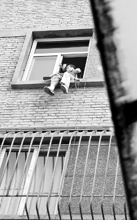 “你真傻啊,有啥想不開的,非要抱著自己的孩子尋短見?”樓下,人群中一名中年婦女不停地勸著。“別管我,他不回來,我也不活了!迸忧榫w很激動(dòng),左手抱著孩子,右手扶著窗戶,邊哭邊說,并時(shí)不時(shí)騰出手比畫一番。懷里的孩子一直朝外看著,也不時(shí)地扭動(dòng)身子,讓樓下的人群為倆人的安全捏一把汗。