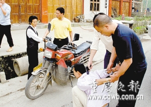 盡管摩托車車速很快,但民警冉景明還是發(fā)現(xiàn)了一個(gè)細(xì)節(jié):車上兩人神色慌張,同車婦女還緊緊攥著一個(gè)黑色挎包。更讓冉景明生疑的是,摩托車駛出約20米后,車上兩人還在回過(guò)頭張望。