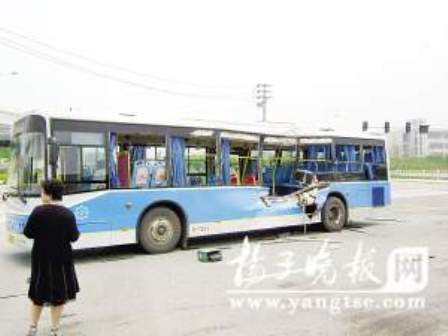 小徐是南京郵電大學(xué)大一的新生,昨天上午10點(diǎn)多鐘的時(shí)候,他剛從學(xué)校門口出來,就上了這輛97路公交車。車上的人并不多,后面還有位置,小徐便找了一個(gè)靠門的位置坐了下來。公交車在駛離南京郵電大學(xué)公交站臺(tái)后,繼續(xù)向南京財(cái)經(jīng)大學(xué)方向行駛,在通過兩所大學(xué)中間的一處十字路口的時(shí)候,一輛大卡車筆直地向公交車的中部撞來。“哐”的一聲,卡車的左邊車頭撞進(jìn)了公交車的中部偏后方。乘客瞬間從座位上被撞到了走道中央,地面上全是碎玻璃碴,不少乘客滿臉都是血,小徐的嘴巴被碎玻璃碴劃傷。