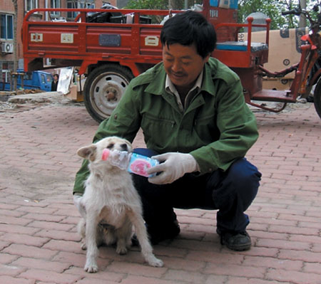 這只流浪的小狗叫小丑兒,原來(lái)的主人住在星海街,因?yàn)榘峒叶鴮⑺z棄了。今年4月大,連降了一場(chǎng)很大的雨雪,因天氣的原因,收廢品的王先生沒(méi)有出門(mén),在家中把幾天收的廢品整理一下。在搬廢品的時(shí)候,王先生突然聽(tīng)到類(lèi)似呻吟的聲音,于是就順著聲音找去,看到了一只白色的小狗蜷縮在廢品邊上,瑟瑟發(fā)抖,無(wú)精打采的,眼睛里流露出求助的神情。王先生把它抱進(jìn)屋,并給它吃的喝的。當(dāng)天氣暖和時(shí),王先生便把小狗送到了門(mén)外,準(zhǔn)備放走,可這只小狗怎么也不肯離開(kāi)王先生。從此,王先生出去收廢品的時(shí)候,走到哪里,小丑兒便跟到哪里,還把街上被人遺棄的瓶子,撿到王先生的跟前。后來(lái),王先生從鄰居們那得知小丑兒的經(jīng)歷,便把它留在了自己身邊。