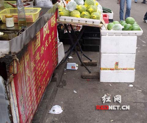 記者再去采訪時(shí),發(fā)現(xiàn)兩家店面的中間地帶,仍然擺放兩壘西瓜:一壘西瓜擺放在放桌上;緊挨著還有一壘白色泡沫盒疊起來(lái)的西瓜,仍有逼近路中央的趨勢(shì)。記者問(wèn)到被砸壞的工具和被砸掉的雞蛋、果醬、辣椒等原料的賠償問(wèn)題時(shí),包父嘆了口氣說(shuō):“沒(méi)有賠償,大家鄰居一場(chǎng),這些也就算了,但是心里還是有個(gè)小要求,希望水果店店主能把隔在中間的西瓜挪開(kāi)些,方便大家走路。”
