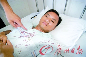 昨日,記者在化州人民醫(yī)院外二科見到了正在這里療傷的受傷教師。其中一名黃老師告訴記者,當時他與李老師等人負責在校門口值守,突然聽到李老師“你們想干什么?”的喊聲后,發(fā)現(xiàn)歹徒正揮棍朝李老師猛打,他即沖上去試圖阻止,結(jié)果頭部被打了一棍而昏倒地上。