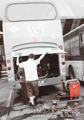 據(jù)維修工人介紹,冒煙的公交車的確出了故障,但問題不大,主要是發(fā)動機(jī)排氣管上的空氣壓縮機(jī)壞了,更換新的壓縮機(jī)后就不會有問題了。記者仔細(xì)觀察了被換下的空氣壓縮機(jī),這是一個類似于鼓風(fēng)機(jī)的東西,據(jù)說加裝在排氣管上后,可以利用空氣動力學(xué)原理在原先的基礎(chǔ)上加大車輛動力!氨确秸f原來的柴油機(jī)動力是150馬力,加裝了空氣壓縮機(jī)就可以達(dá)到200馬力或者更多。”維修工人說。