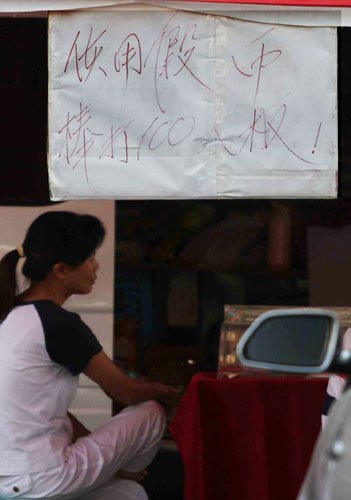昨日,在西安南郊一彩票購(gòu)買點(diǎn),老板掛出一張寫(xiě)有 “使用假幣,棒打100大板”字樣的紙牌,讓人想到了電視劇中古時(shí)官府衙門的情景。