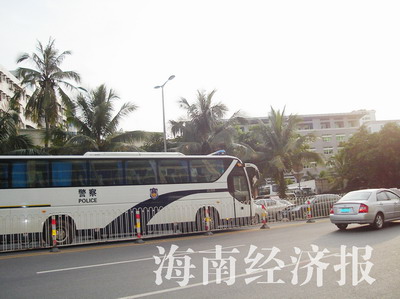 昨日下午6時(shí)許,一輛警用大巴車在途經(jīng)?诃傊荽蟮拉偵阶詠硭韭范螘r(shí),突然調(diào)頭逆行在川流不息的車流中,準(zhǔn)備開回到十幾米之外的瓊山監(jiān)獄的“家”(圖)。此舉令相向而行的眾司機(jī)目瞪口呆,眾司機(jī)不斷鳴笛,但該警車仍然我行我素。