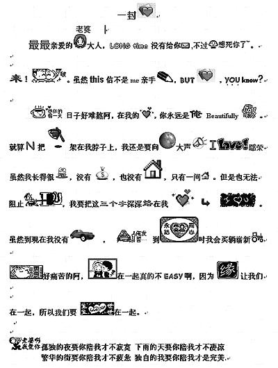 MM、菜鳥、恐龍、粉絲、BT……這些俏皮的“網(wǎng)語”一下子得到了很多年輕人的認同!拔医(jīng)常把‘愛’字寫成‘じ☆ve’,里面有日文和英文,它能直觀形象地表達‘愛’的含義。”上海市第四中學(xué)初三學(xué)生君君說,她和同學(xué)在網(wǎng)上聊天時用的是“火星文”,她的QQ個性簽名也是“火星文”,她認為這樣很可愛,也很有個性。