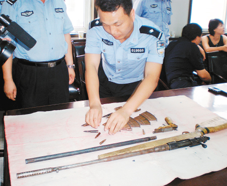 12日下午3時許,走投無路的楊某投案自首,交代了私藏槍支彈藥的犯罪事實,但此時楊某身上并未攜帶槍支。警方立即對楊某家進(jìn)行搜查,共搜出一把自制手槍,一把三八制式步槍,75發(fā)步槍子彈。這些槍和子彈都沒藏在一處,分別藏在床底下、墻洞里和后院山墻上。13日,楊某涉嫌私藏槍支彈藥被戶縣警方刑拘。
