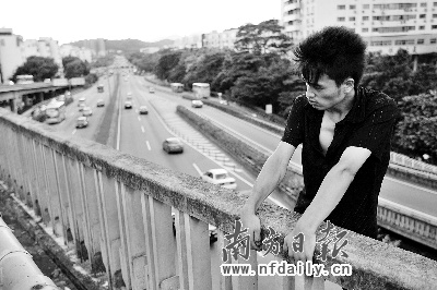 “你們不要管我。我要打我的保安、還有那個(gè)民警,到這里來給我一個(gè)說法!”昨天下午4時(shí),一名來自重慶的黑衣男子爬上深圳市黃木崗立交橋,以跳橋相威脅,要為自己前幾天去福田區(qū)蓮花北某社區(qū)推銷被打以及到蓮花派出所報(bào)案民警不予受理的事情討一個(gè)說法。