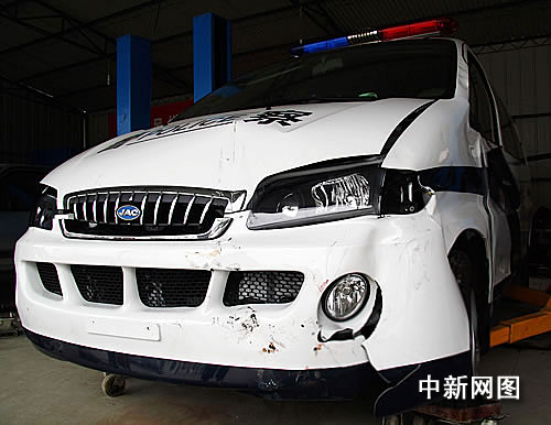 中新網(wǎng)鹽城七月二十七日電(于從文 童盛)七月二十五日下午三點二十分左右,在鹽城市建湖縣湖中南路和森達路交叉處,一輛車牌號為蘇JB一六五警的該縣人民檢察院警車由南向北高速駛過,在與一輛助力車發(fā)生碰撞后沖進人行道,短短五十米距離內(nèi)連撞三人,之后沖上路崖,四個輪胎全部爆胎,路崖邊的道路指示牌也被當場撞斷。