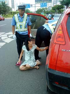 昨日上午,?谑泄簿纸痪ш犔厍诖箨犆窬邶埨ツ下泛图t城湖路一帶對交通違法情況進(jìn)行檢查。上午9時30分許,一輛車牌號碼為瓊AE××60的哈飛路寶小轎車從紅城湖路拐向龍昆南路,沿省婦幼保健院路段行駛。在紅城湖路拐彎處,執(zhí)法交警看到該車駕駛員未系安全帶,于是在該車行駛到省婦幼保健院門口路段時,示意該車停下接受檢查。