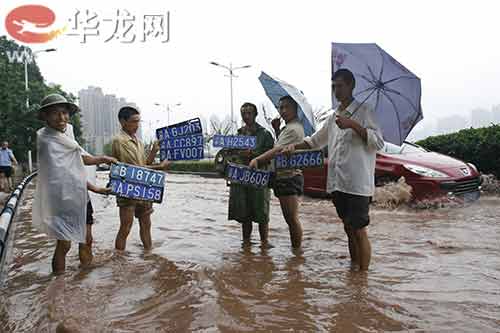 近兩天,山城重慶遭受了大暴雨襲擊,導致主城有些路段積水深達幾米,不少過往車輛猶如在江中行駛,造成一些車牌飄落于積水中。不少“撈客”卻從中發(fā)現(xiàn)了“商機”,他們將積水中撈出的車牌,在返還車主時,向他們索要100元的幸苦費。