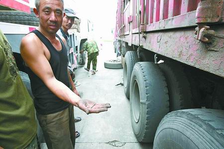 約半小時后,記者趕到京港澳高速鄭州東服務(wù)區(qū)。西側(cè)服務(wù)區(qū)停車場里,仍停有七八輛被扎破輪胎的貨車,每輛車被扎爛輪胎1至3只不等。司機們一籌莫展,不停嘆氣。