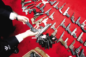 五六式?jīng)_鋒槍、唧筒式獵槍、德國造PP手槍、手雷……日前,一個頗具規(guī)模的非法槍支藏匿窩點被重慶警方一舉搗毀,多名犯罪嫌疑人被抓獲。包括這批槍支彈藥在內(nèi),重慶警方目前已收繳各類非法槍支700余支,爆炸物2萬多千克。“滅槍治爆行動”卓有成效。
