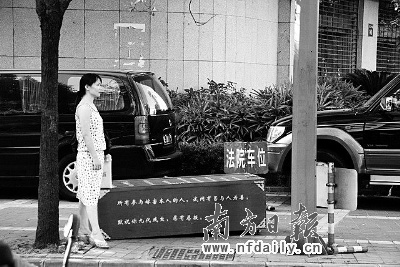 昨日上午8時(shí)許,車水馬龍的佛山市禪城區(qū)法院門口赫然驚現(xiàn)一副棺材,棺材上還有辱罵法官的文字,引來不少群眾圍觀。