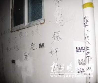“看見(jiàn)兩個(gè)女子趁黑在墻上寫(xiě)東西,現(xiàn)在看來(lái)就是寫(xiě)這些東西了!币晃荒繐粽吒嬖V記者,前天晚上,趁著天黑,有兩名女子來(lái)到明園這戶居民家門(mén)前,開(kāi)始寫(xiě)東西,左寫(xiě)右寫(xiě),寫(xiě)了約摸有十幾分鐘就走了,昨天早上8點(diǎn)多,戶主起床開(kāi)門(mén)后,這才發(fā)現(xiàn)自家墻上及附近低矮的圍擋板上,均有指名道姓的罵人語(yǔ)句。記者看到,從戶主蔡先生家門(mén)兩邊向外,以及對(duì)門(mén)的圍擋板上,留有大黑簽字筆寫(xiě)下的罵人語(yǔ)句,諸如“蔡某某人渣”、“蔡某某缺德”、“蔡某某強(qiáng)奸犯”等等,還有一些更加不堪入耳辱罵的話,讓人看了瞠目結(jié)舌。粗略數(shù)數(shù),多達(dá)十幾處。