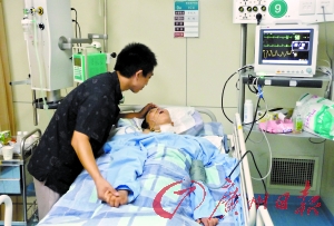 王素容的主治醫(yī)生徐醫(yī)生告訴記者,王素容因?yàn)橹匦惋B腦損傷,已經(jīng)是植物人狀態(tài),什么知覺(jué)都沒(méi)有了,要想她蘇醒只能等奇跡。曾紹勇仍然在等待這個(gè)奇跡。