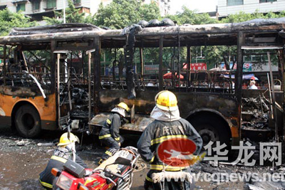 15:40分,華龍網(wǎng)記者趕到事發(fā)現(xiàn)場(chǎng),看到車輛已經(jīng)被燒的面目全非。警方已經(jīng)在現(xiàn)場(chǎng)拉起警戒線,開始調(diào)查和清理現(xiàn)場(chǎng)。據(jù)目擊者稱,起火點(diǎn)是車子的中后部,短短3、4分鐘時(shí)間,公交車玻璃發(fā)生爆炸,大火就將整輛公交車包圍。事發(fā)后,司機(jī)打開車門,乘客逃出。據(jù)重慶商報(bào)報(bào)道,有3名乘客受傷。