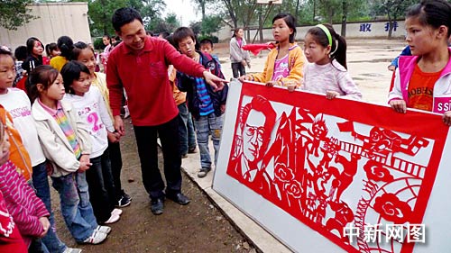 據(jù)了解,該校老師王贊強用一個月時間把《東方紅》、《江山多嬌》、《春天的故事》、《走進新時代》等十首紅歌,剪出紅歌剪紙作品,來祝福新中國60華涎。每張紅歌剪紙用朱紙做原料,長1.5米,寬0.8米!稏|方紅》剪紙內(nèi)容除毛澤東主席頭像外,還有學(xué)大寨、第一顆衛(wèi)星上天及原子彈爆炸等內(nèi)容!督蕉鄫伞酚泻\濤總書記頭像、奧運會、神六上天等內(nèi)容,每張紅歌剪紙都包含著濃烈的時代氣息。