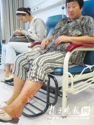 記者在醫(yī)院看到,周大媽左腳上被狗咬出了兩個深深的洞,左腿小腿肚子上也是鮮血淋漓,被醫(yī)用紗布包扎著,“腿肚子縫了三針。”周大媽的老伴告訴記者,他們到醫(yī)院后已經(jīng)交了兩千塊錢醫(yī)藥費了,民警讓他們先看病,費用肯定是要跟狗主人算的。他還告訴記者,周大媽是一名腫瘤患者,平時身體就不好,這次被狗咬傷了,又是掛水又是打疫苗,還不知道對腫瘤的治療有沒有影響。