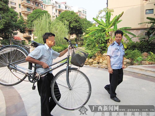 南寧一小偷偷保安自行車 保安罰其扛車游走(圖)