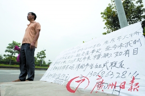 他說,在兒子出事后的第二天,交警說沒找到能說明事故情況的證據(jù)和證人。為此,范叔制作了一塊半米見方的告示,希望有路過的好心市民提供線索,如能提供肇事車牌號酬謝5萬元。一等便是8天,從早上6時多到晚上8時左右,53歲老人一直在出事地點等。但直到昨天仍沒有進(jìn)展。