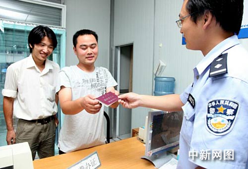 中新網(wǎng)舟山10月1日電 (記者 袁爽) 今天是《浙江省流動(dòng)人口居住登記條例》正式實(shí)施的日子,在浙江舟山市做鋼筋工的安徽省阜陽(yáng)小伙子周懷逸一大早便趕到當(dāng)?shù)嘏沙鏊,?lái)領(lǐng)取這張夢(mèng)寐以求的居住證,從今往后,最為新居民的周懷逸將和當(dāng)?shù)厝讼碛型鹊纳鐣?huì)保障、公共服務(wù)等具體方面的待遇。