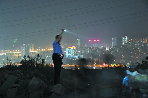 “天很黑,很多行人都看不清路,他就一直高舉著手電筒,好讓大家安全通過……”前日,大渝網(wǎng)Q吧出現(xiàn)了一篇名為《人民警察》的帖子。發(fā)帖人“張力”在帖子里展示了一組照片,照片里,幾名警察正在疏導(dǎo)觀看焰火晚會的市民,其中,還有一名民警站在路邊的亂石堆上,一直單手高舉著手電筒為行人照路。照片出來后,這位民警受到了很多網(wǎng)友的稱贊,被尊稱為“燈塔民警”。