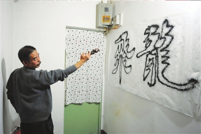 姜尚志的妻子說,最瘋狂的時候,家里的墻上都是他“滋”的字跡,每天除了吃飯、睡覺,他就是寫字、看書,旁的什么都不管。姜尚志說,他也很難理解自己的瘋狂,寫字的時候,他把一切都忘記了。