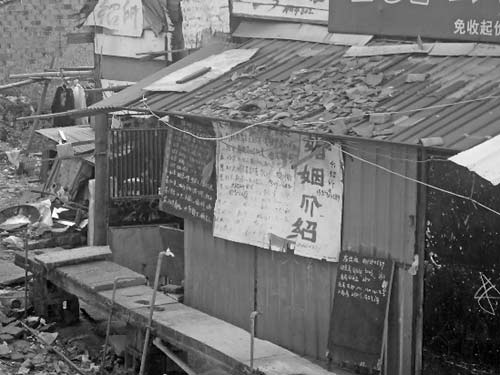昨天,記者來到臺州市黃巖區(qū)江北路34號,地處永寧江大橋橋墩西側(cè)的一處兩層樓房,房屋外頭很破舊,掛滿了中介信息。除了職業(yè)介紹、房屋介紹外,更多的則是婚姻和保姆介紹。