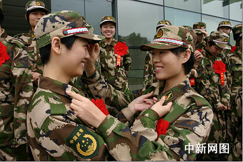 今年是女兵征集辦法改革的第一年,也是全國普遍面向社會征集女兵的第一年,建國60周年閱兵式上女兵的颯爽英姿,更加催生了這股“女兵熱”。記者從華東師大了解到,到報名截止日該校共有兩百零九名女大學生報名參軍,創(chuàng)該校歷年之最。最終圓夢的46名女大學生有來自軍人世家、四川災(zāi)區(qū),也有首批免費師范生。
