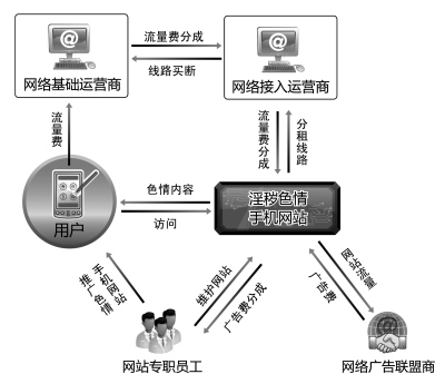 上海市公安機(jī)關(guān)不久前查處的一起案例,為人們揭示了“手機(jī)色情”背后的利益鏈條。調(diào)查發(fā)現(xiàn),上!八淹芮闈W(wǎng)”、“蛙澀網(wǎng)址之家”等網(wǎng)站與數(shù)十個(gè)淫穢色情手機(jī)網(wǎng)站互為鏈接,這些手機(jī)網(wǎng)站系一科技公司所有。公司負(fù)責(zé)人盛某自2005年開(kāi)始建立色情網(wǎng)站,將網(wǎng)站流量銷(xiāo)售給贏點(diǎn)、挖寶、新時(shí)代等網(wǎng)絡(luò)廣告聯(lián)盟商。其先后開(kāi)設(shè)了40多個(gè)大型手機(jī)淫穢色情網(wǎng)站,并以網(wǎng)站廣告費(fèi)收入的30%作為回扣,誘使專(zhuān)職員工維護(hù)和推廣這些手機(jī)淫穢色情網(wǎng)站,從中獲利100余萬(wàn)元。