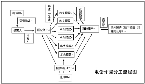 專案組確定該案是一個(gè)以境外人員為首的組織嚴(yán)密的犯罪團(tuán)伙所為。該團(tuán)伙通過(guò)網(wǎng)絡(luò)電話撥打事主電話,以事主家庭電話欠費(fèi)、銀行賬號(hào)涉嫌違法等為借口,騙取事主將賬戶內(nèi)的錢(qián)轉(zhuǎn)賬或提取現(xiàn)金后存入團(tuán)伙成員提供的“安全賬戶”內(nèi),并通過(guò)頻繁轉(zhuǎn)賬將賬戶內(nèi)的大額存款分散到多個(gè)賬戶內(nèi),其他成員則在全國(guó)各地分別提取現(xiàn)金。