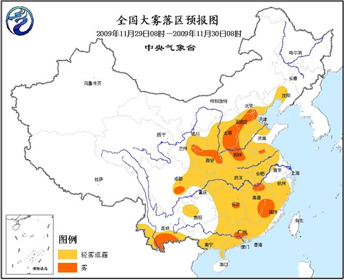 預(yù)計(jì)29日早晨到上午,西北地區(qū)東部、華北中南部、遼寧中部、黃淮中西部、江淮大部、江漢、江南大部、華南大部以及四川盆地大部、重慶大部、貴州西北部、云南南部等地有輕霧,其中,北京南部、天津、河北中部和西南部、山西中南部、河南中部、陜西中部、四川盆地南部、湖南中部、江西北部和東部、福建西部、廣東中部、云南南部等地的部分地區(qū)有能見度小于1000米的霧,局地能見度不足200米。