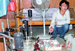 7月初,江門警方將“地主”販賣毒品的線索轉(zhuǎn)給佛山市公安局刑警支隊(duì),但“地主”聞風(fēng)潛伏,停止了制販毒活動。專案民警經(jīng)過近4個月的深入摸查,發(fā)現(xiàn)該團(tuán)伙不但販賣毒品,還利用家庭式作坊從事制造毒品活動。