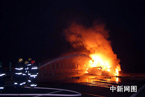 中新網(wǎng)寧波12月12日電(記者 何蔣勇 通訊員 來明)12日凌晨1時43分,位于杭甬高速浙江寧波出口不到2公里處發(fā)生一起慘劇,一輛奔馳小轎車與一輛大型掛車發(fā)生追尾后撞上公路護(hù)欄,奔馳車起火燃燒,事故造成車上兩人命喪火海。