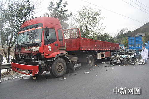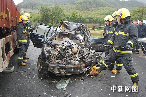 中新網(wǎng)杭州12月15日電(記者 江耘 袁爽)今天中午一時(shí)三十分許,浙江杭州臨安市板橋鄉(xiāng)平峰村口的公路上發(fā)生一起車禍,一輛小轎車從村口出來(lái)時(shí)遭大貨車的猛烈沖撞。事故造成了小車內(nèi)五人中的三人當(dāng)場(chǎng)死亡,兩人受傷。一旁的一名路人也被殃及受傷。