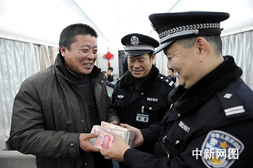 獲知十二萬元巨款找到的消息后,忐忑不安的孟先生終于一塊石頭落了地。當(dāng)晚,孟先生和同事返回徐州,并送上了一面錦旗。在車上,乘警將十二萬元現(xiàn)金交到了孟先生的手中!罢鏇]想到,錢還能找到,還是咱們警察負(fù)責(zé),為老百姓著想!”喜笑顏開的孟先生連聲贊嘆。(完)