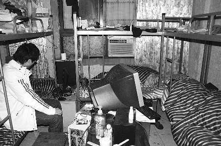 楊華是福建泉州人,兩年前從廈門大學(xué)畢業(yè),在當(dāng)?shù)匾凰鶎W(xué)校當(dāng)老師!跋胗幸环蟮淖鳛!苯衲瓿酰o職上北京闖蕩,遇到很多挫折又來(lái)到了重慶。他說(shuō),剛到重慶時(shí)身上只有1000元,而這1000元還是信用卡透支的。找到這種出租床位的公寓,就立刻住下了!白≡诶锩娴亩际遣畈欢嗑秤龅男值。”楊華說(shuō),工作的地方就在405車站對(duì)面,幫人家做廣告,收入不固定!斑\(yùn)氣不好的話一個(gè)月1000!彼懔艘还P賬,每月房費(fèi)260、飯錢600,身上幾乎不剩錢?斓街形绲臅r(shí)候,楊華出去了一會(huì),在樓下端上來(lái)一碗小面,3塊錢。他說(shuō),有時(shí)候會(huì)很茫然,不知道未來(lái)在哪里。鄭偉是楊華的房東,他說(shuō)自己也曾是北漂,知道這些大學(xué)生的不易。“現(xiàn)在租床位的大學(xué)畢業(yè)生越來(lái)越多了!彼f(shuō),商圈周圍很多家這種出租床位的,都是針對(duì)找工作的大學(xué)生。在他這里租床位的畢業(yè)生,基本都在觀音橋商圈上班!白鲣N售跑業(yè)務(wù)的居多,一月也就千把塊!编崅u搖頭感嘆。記者 談書 實(shí)習(xí)生 蔡力