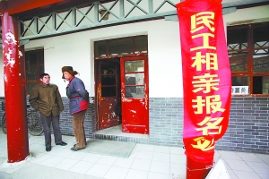 今天上午9時(shí)許,略顯冷清的望京公園里,幾條帶著相親標(biāo)語(yǔ)的紅色橫幅旁,時(shí)不時(shí)會(huì)有幾個(gè)晨練者走過(guò)。民工相親會(huì)的組織者們?cè)诠珗@管理處的辦公室里靜待相親者。盡管此后的一小時(shí)里,先后有10余名相親者魚貫而入,但令人擔(dān)心的一幕還是發(fā)生了,前來(lái)相親的基本都是男性。