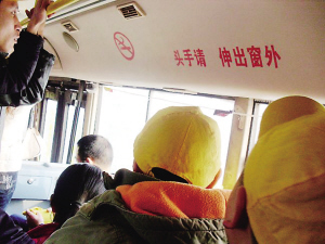 公交車上標(biāo)語提示“頭手請伸出窗外”,細(xì)心的乘客一看才發(fā)現(xiàn),原來標(biāo)語中的“勿”字不見了,本來警示安全的標(biāo)語,如今卻成了安全隱患。昨天,涪陵一網(wǎng)友發(fā)帖,講述涪陵一輛公交車上的雷人事。